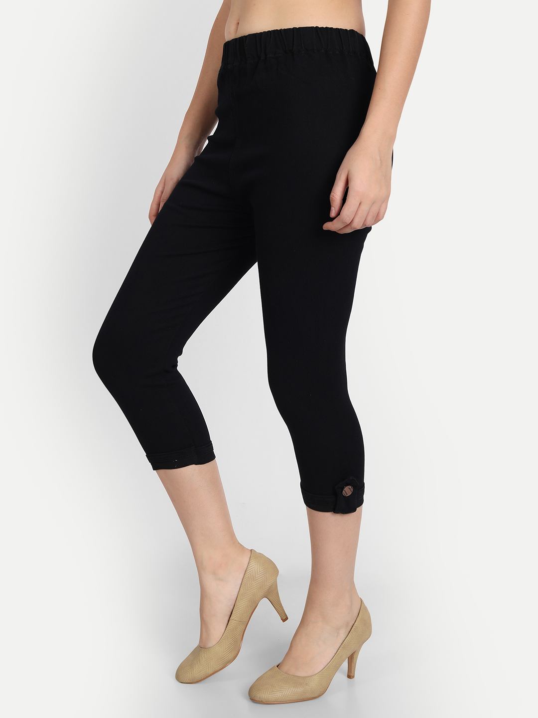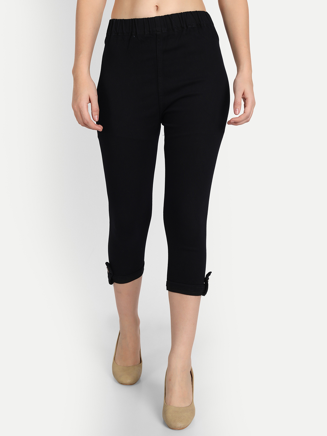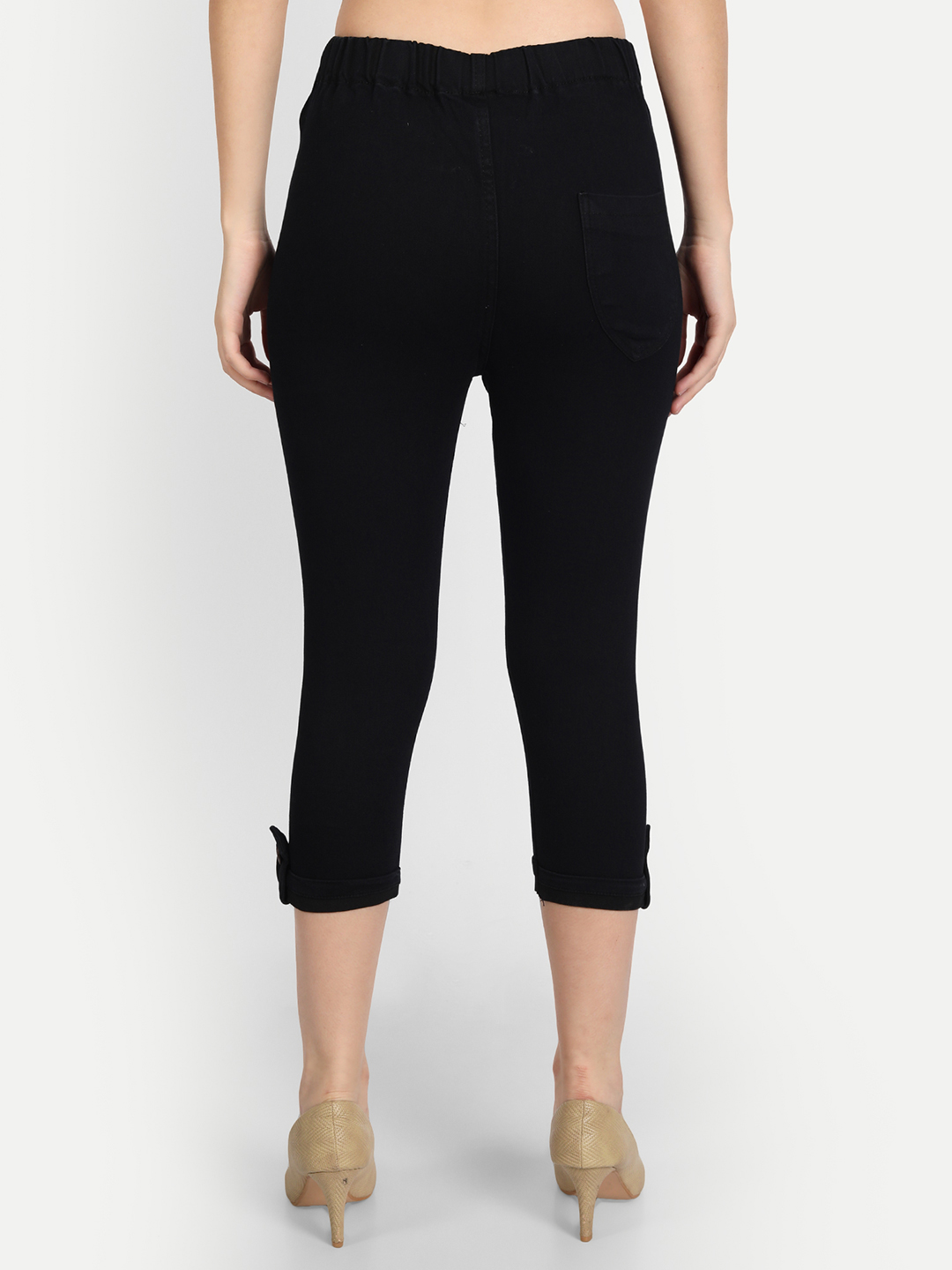 Be the first to review “AngelFab Women Elastic Belt Black Capri”