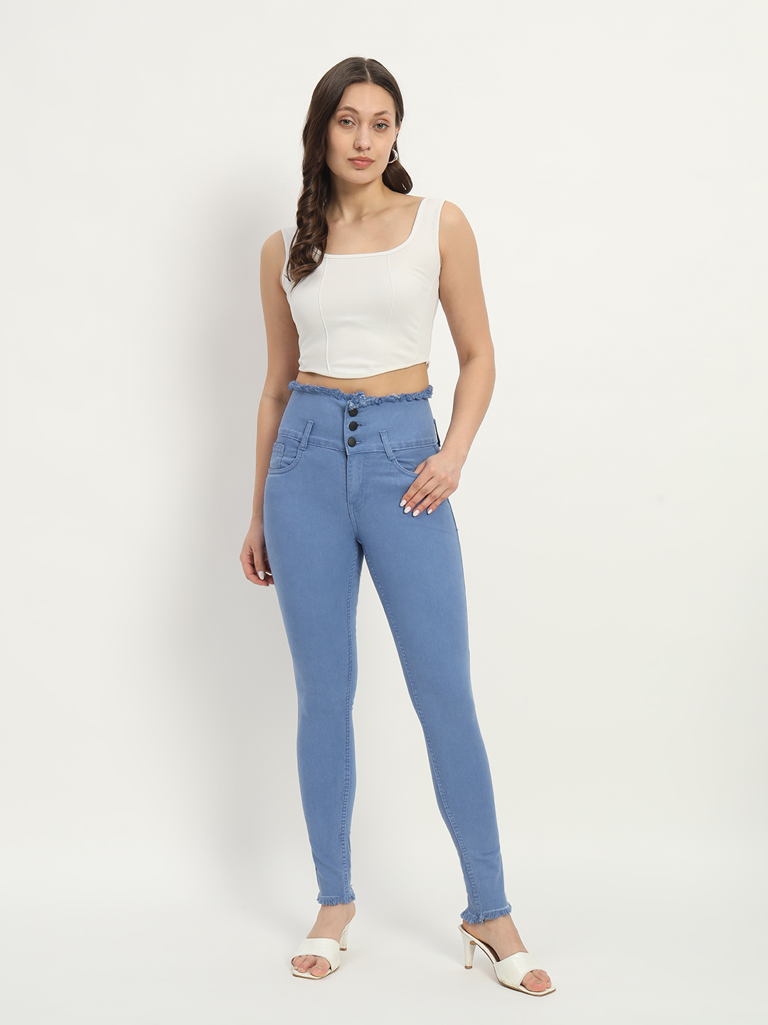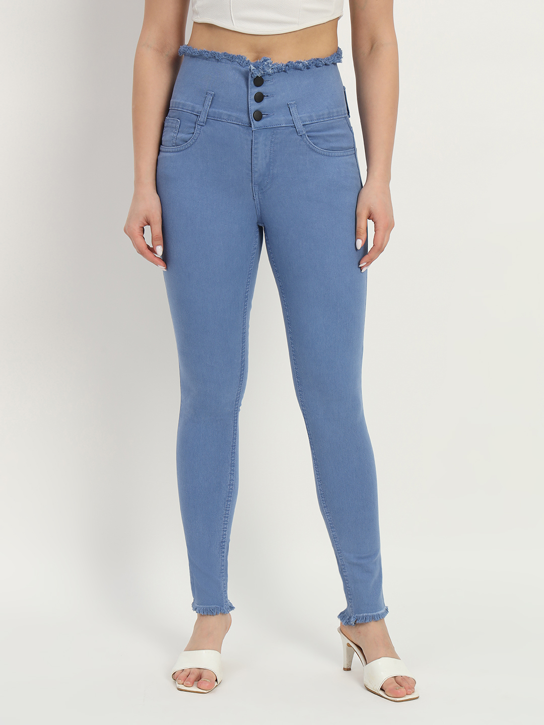 AngelFab Women Skinny fit Sky Blue Jeans
